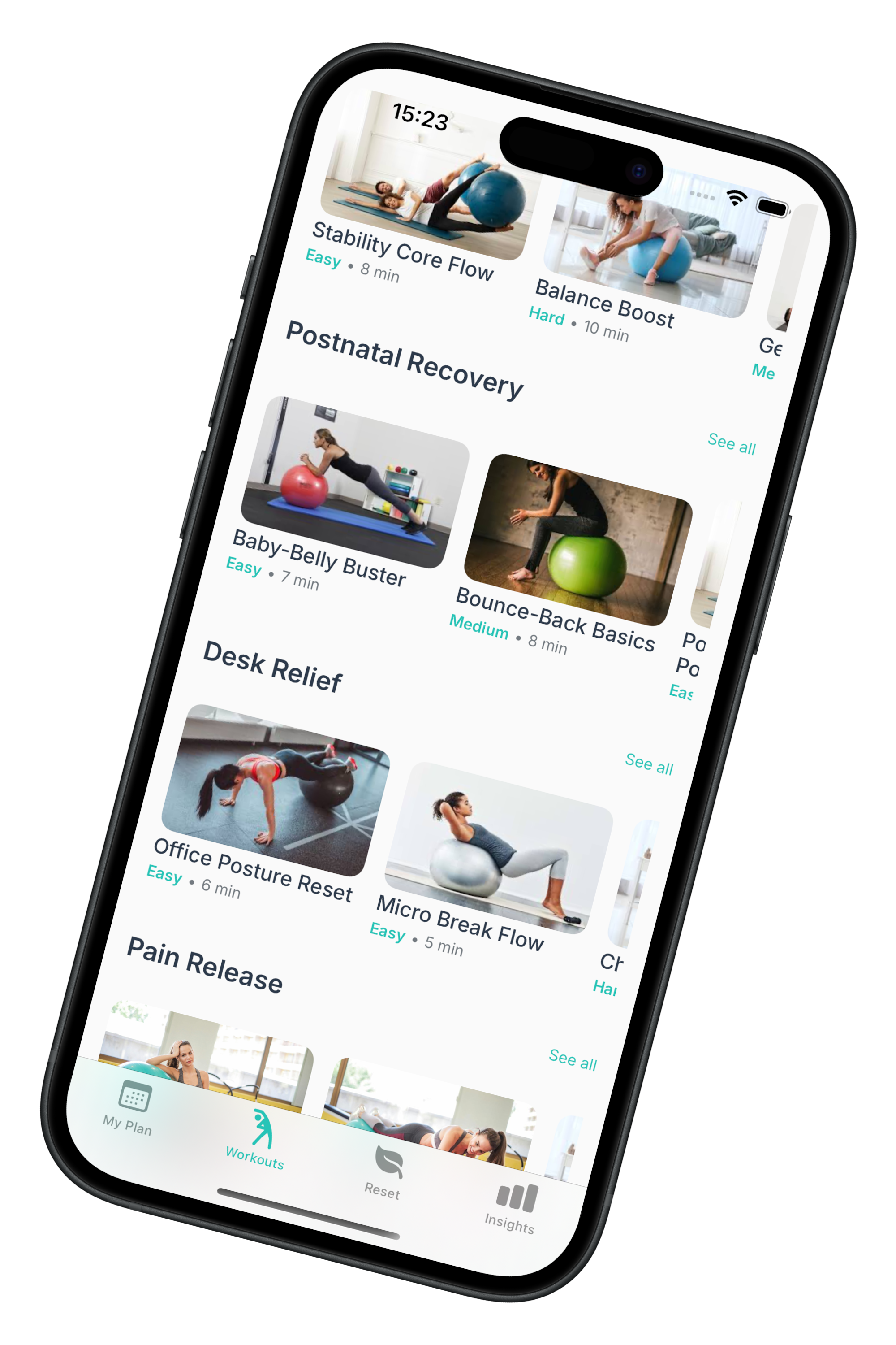 Build strength, banish pain, and cultivate calm with our physio-backed Stability Sync method.